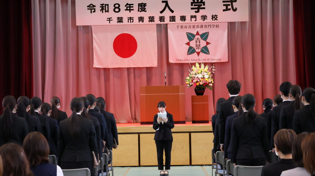 4月6日(月)午後1時から令和8年度の入学式を行いました。校庭の桜も満開となり、本校にも輝かしい春がやってきました。80名の新入生の皆さん、ご入学おめでとうございます。教職員・在校生一同、皆さんの入学を心から歓迎いたします。いよいよ始まる学校生活が、この桜のように実り多く素晴らしいものとなるよう願っています。これから3年間、辛いことや大変なこともたくさんあると思います。仲間と切磋琢磨しながら卒業まで頑張りましょう!