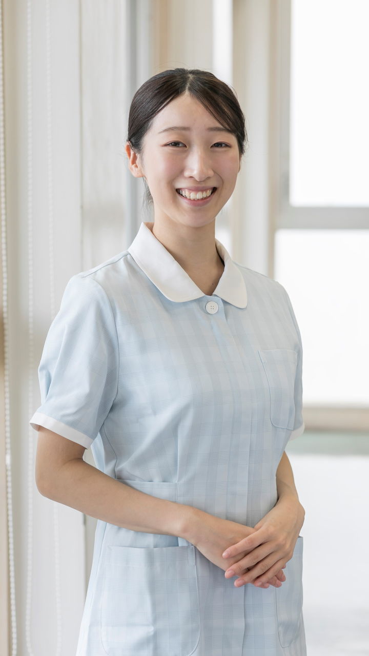 していることから、より実践に近い環境で学べると思い入学を決めました。先生方は分からないことを質問したら分かるまで説明してくれたり、勉強方法を生徒に合わせてアドパイスをしてくれたりするなど、いつも親身に対応してくれます。将来はどんなイレギュラーな事態が起こっても、冷静に臨機応変な対応ができる看護師になりたいです。